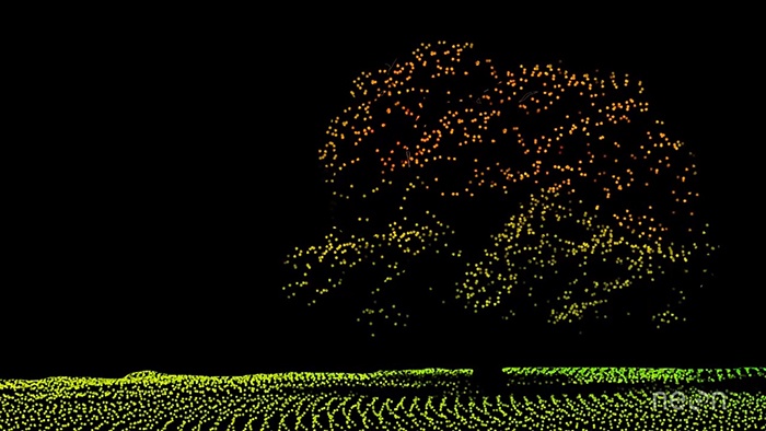 LiDAR系統還有一個非常重要的特性,就是它所發出的脈沖不僅會到達樹頂并返回,有時候也可以穿透某些地物。就好像陽光照進樹林中一樣,LiDAR的光束也同樣可以穿透樹冠,并反射樹冠以下的部分。LiDAR系統這種不僅可以記錄樹頂反射信息,而且可以穿過樹冠直達地面的特性,使得LiDAR系統成為在林業研究中非常有用的工具。這種可以穿透樹冠并提供多次回波的特性,可以告訴我們有關樹林結構的更多信息。比如,它可以告訴我們樹的形狀,或者樹林樹葉的密度,有時甚至可以提供樹林里地面灌木的情況。